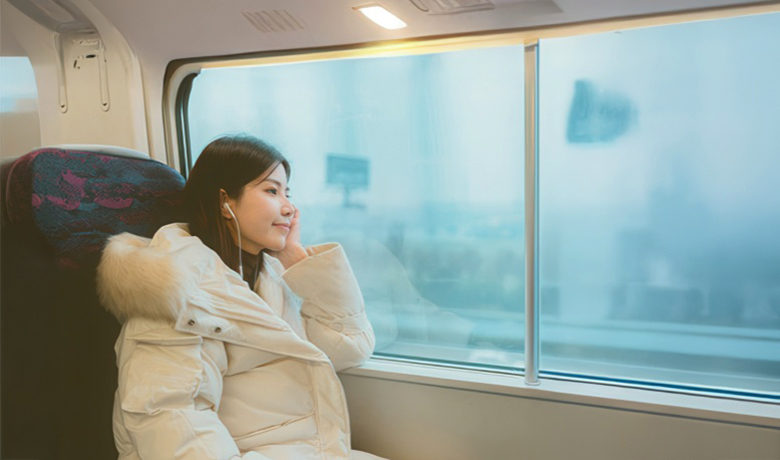 通道两侧的落地窗外,跑道指示灯在暮色中次第亮起。经过一块反光玻璃时,我看见自己倒影与她的身影重叠。我能感受到她的不易,而自己和来来往往归途的人们又何尝不是呢?