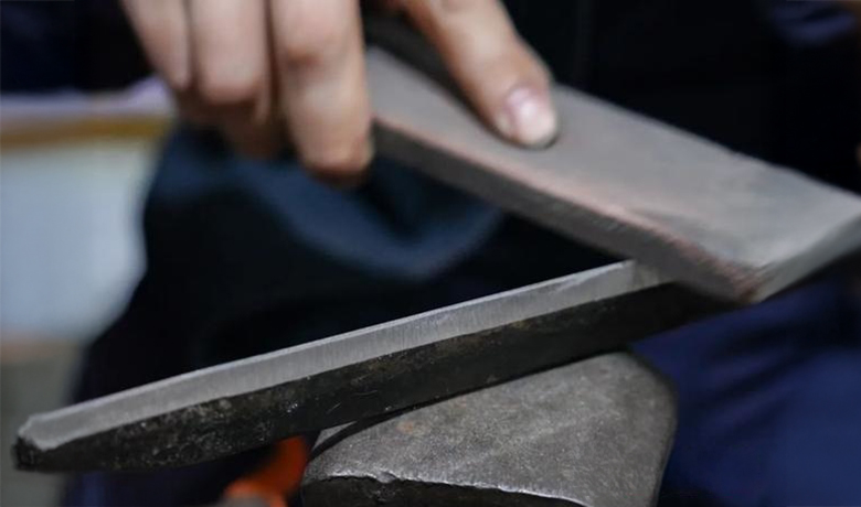 郑家的秘诀在于独有的“夹钢”技艺——将两种钢,一硬一软,烧红锻打成一体,硬钢为刃,软钢为背,经反复锻打至薄如纸,坚而不脆,锋而不卷。剪刀咬合处仅一点,一毫米之宽,却能剪铁如纸。外观质朴乌蓝,不作修饰,留下锤纹的肌理与匠人的呼吸。