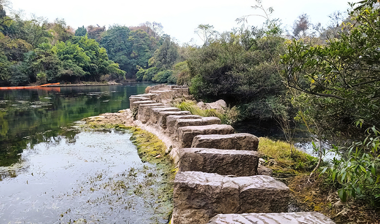 我的家乡地处闽中,有一种原始形式的石桥,叫丁步桥。此类石桥建造方法简单,即在浅而窄的溪流中,用粗砺的方石砌起一个接一个高出水面的石墩,在水草或砂砾中屹立,任流水千淘万漉,形似琴键,声如筝簧。然而,不知经过多少代人的踩踏,石面都磨得锃光闪亮,却一直拙朴又平静横卧着,让过往的行人用双脚踏响岑寂的音符。连通着血脉,维系着乡愁。