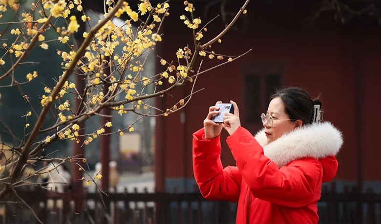 花径上人影浮动。女子们流连于花海,想从这绚烂中撷取一份独属的构图。有人垂首浅嗅,发丝与瓣蕊缱绻;有人融入那片金黄,笑靥自成风景。快门轻响,人花相映的瞬间就此定格,这份心照不宣的默契,彼此成全,也温柔了时光。