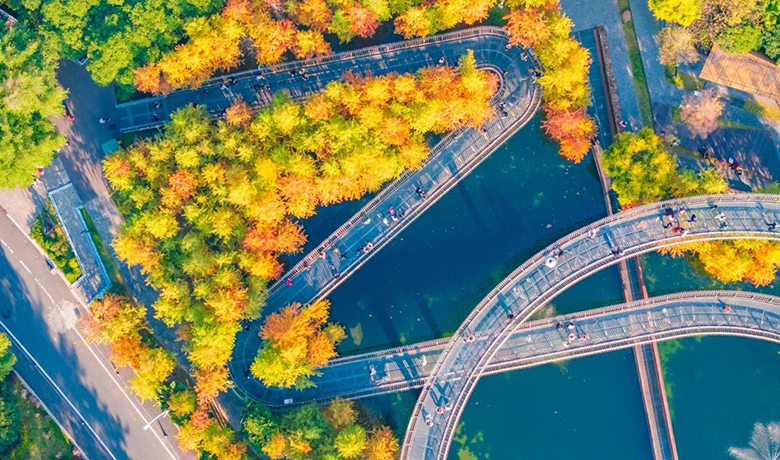 何止是荷花?晋安湖公园的摩天轮与风铃木相映成趣,金鸡山栈道宛如空中花园,温泉公园的如意湖游船摇曳生姿——地铁所到之处,绿意相随,岁月静好。