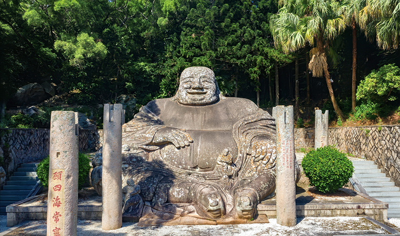 一座山有一座山的风采。瑞岩山,也不例外。这座位于福清龙江入海处高不到200米的蕞尔小山,因为一座弥勒佛造像而闻名四方。佛像本是一块天然石头。元至正元年(1341),里人吕伯恭请工匠依山岩形状历时28年雕琢而成。弥勒盘腿而坐,袒胸露脐,双耳垂肩,左手捻珠,右手抚腹,笑容可掬。在蓝天白云下,在青山绿水间,怡然自乐。无论是谁,见到这尊弥勒,都会情不自禁地发出会心的微笑。