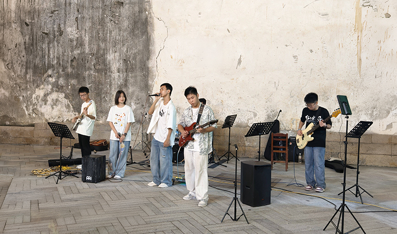 江风裹挟着闽江的湿润气息,轻拂过烟台山老建筑群的斑驳砖墙。在福州市仓山区烟台山漫步街区,一场属于少年的音乐盛宴悄然上演。福州一中音乐社的学生们走出校园,在安澜会馆旁的广场完成了社团首次对外路演。吉他声起、歌声飞扬,吸引众多市民游客驻足聆听,掌声与欢呼声在夜色中此起彼伏。