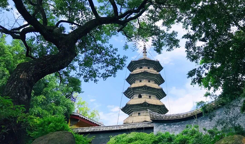 在鼓楼区乌石山东麓,有一座千年古刹——石塔寺,原名净光寺,福建观察使柳冕为德宗李适寿诞祈福,建于唐贞元十五年(799年),紧邻净光寺的“贞元无垢净光塔””也于同时期建成。塔身用青色花岗石砌造,外表略带乌黑,故名“乌塔”,唐乾符六年(879年)毁于黄巢入闽战乱之中。到了五代闽永隆三年(后晋天福六年,公元941年),闽王王审知第七子王延曦称帝,建立闽国,以祈福为名,在净光塔的旧址上建塔,计划建九层,超越其父王审知所建的七层定光塔,即白塔,取名“崇妙保圣坚牢塔”。然而,天佑九年(944年),王延曦在政变中不幸被杀,这座塔也因此只建成了七层便停工了。